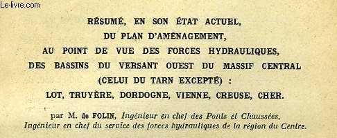 Resume en son etat actuel du plan d'amenagement, au point de vue des forces hydrauliques, des bassins du versant ouest du massif central ( celui du train excepte) : lot, truyere, dordogne, vienne, creuse, cher PDF Kindle